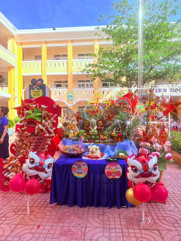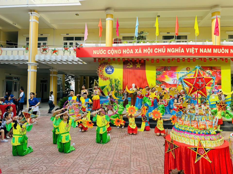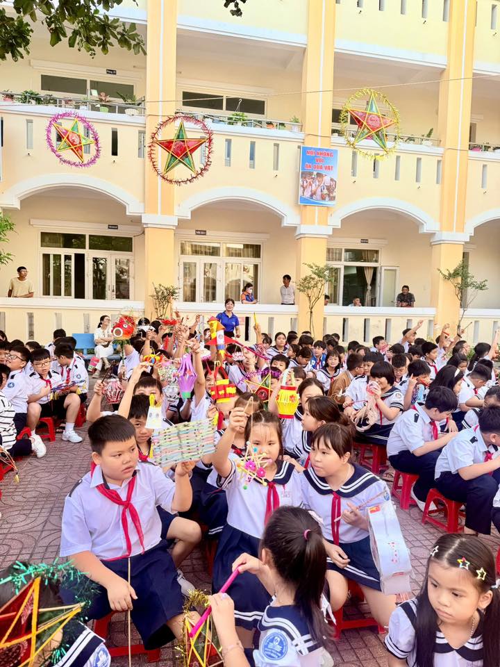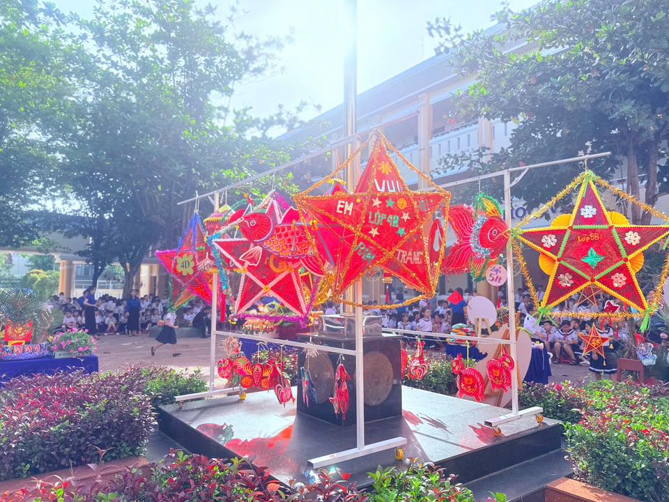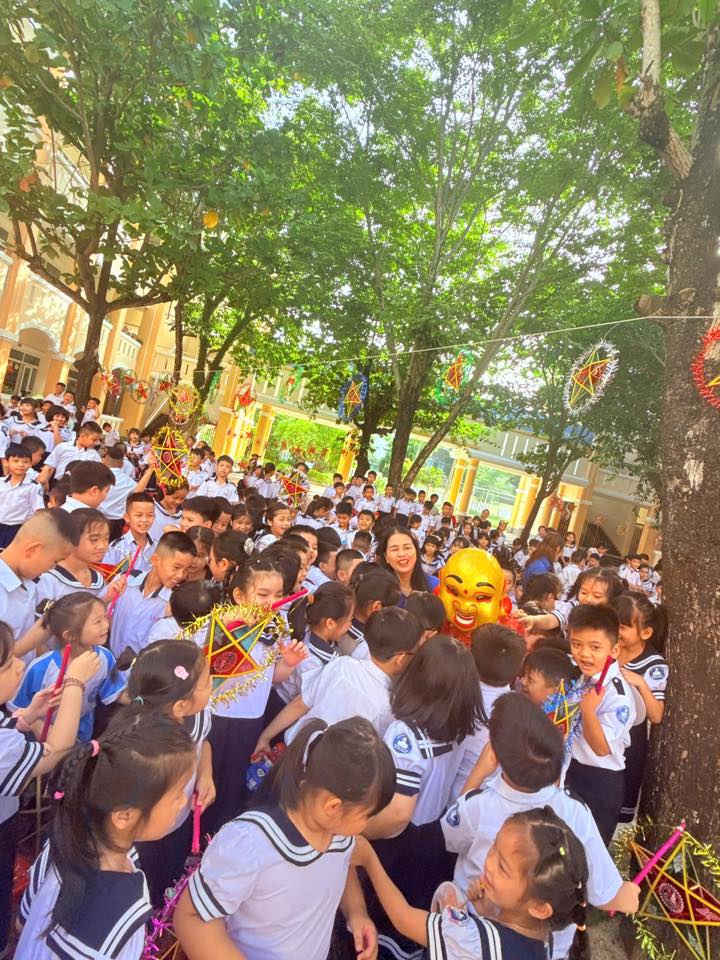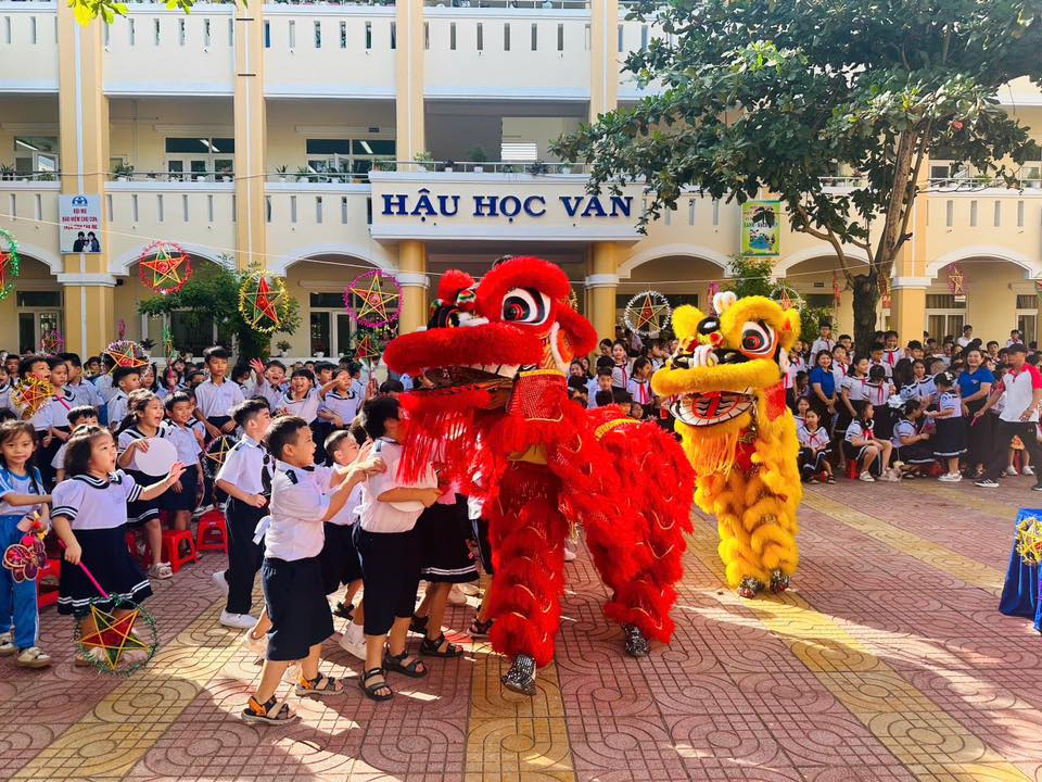 Sân trường càng thêm náo nhiệt với màn múa lân sôi động và phần rước đèn Trung thu lung linh sắc màu, tạo nên không gian tràn ngập niềm vui, tiếng cười.