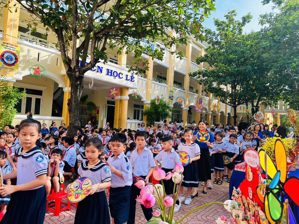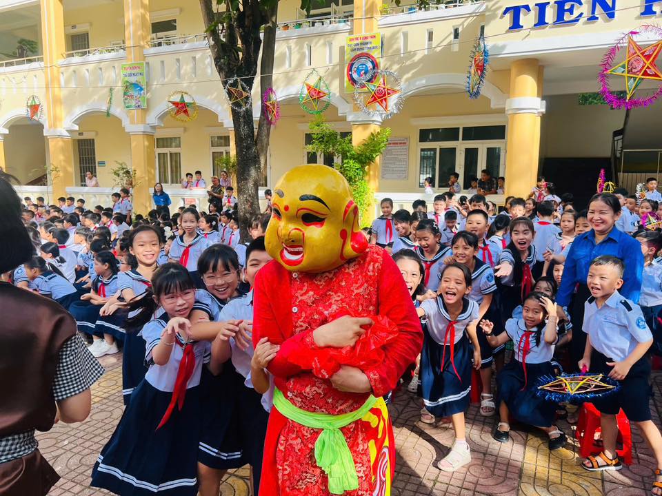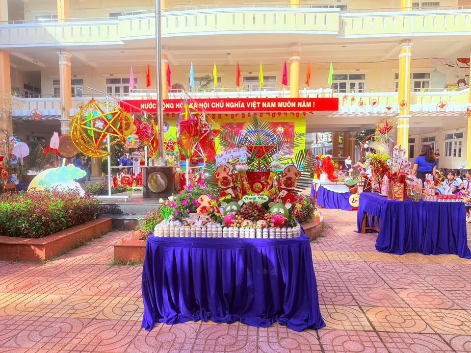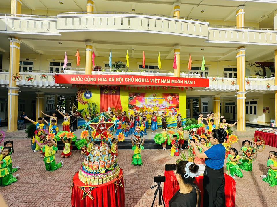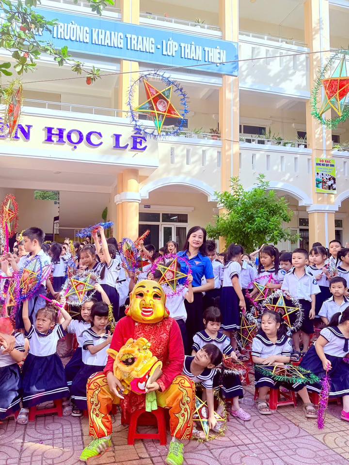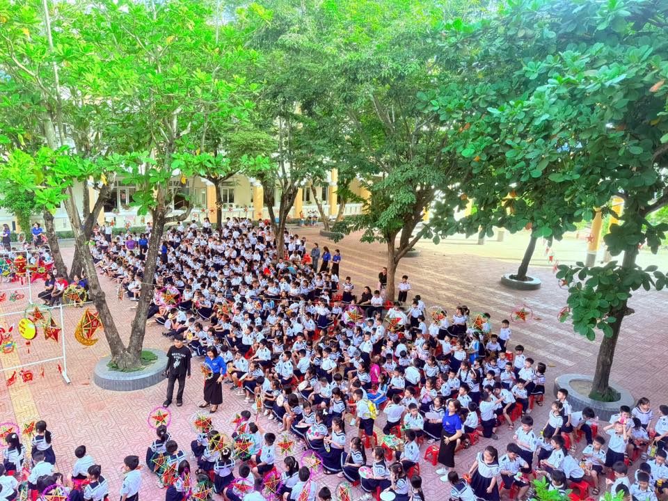 Sân trường càng thêm náo nhiệt với màn múa lân sôi động và phần rước đèn Trung thu lung linh sắc màu, tạo nên không gian tràn ngập niềm vui, tiếng cười.