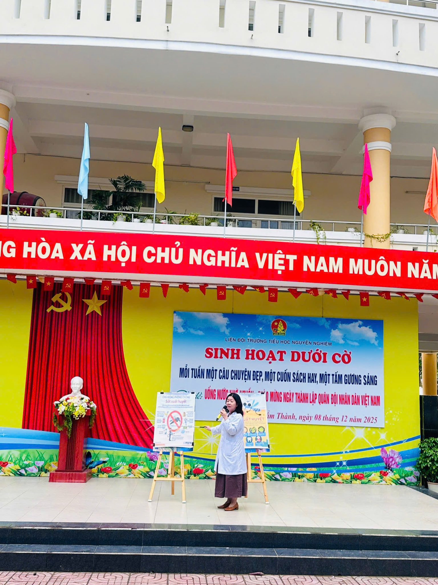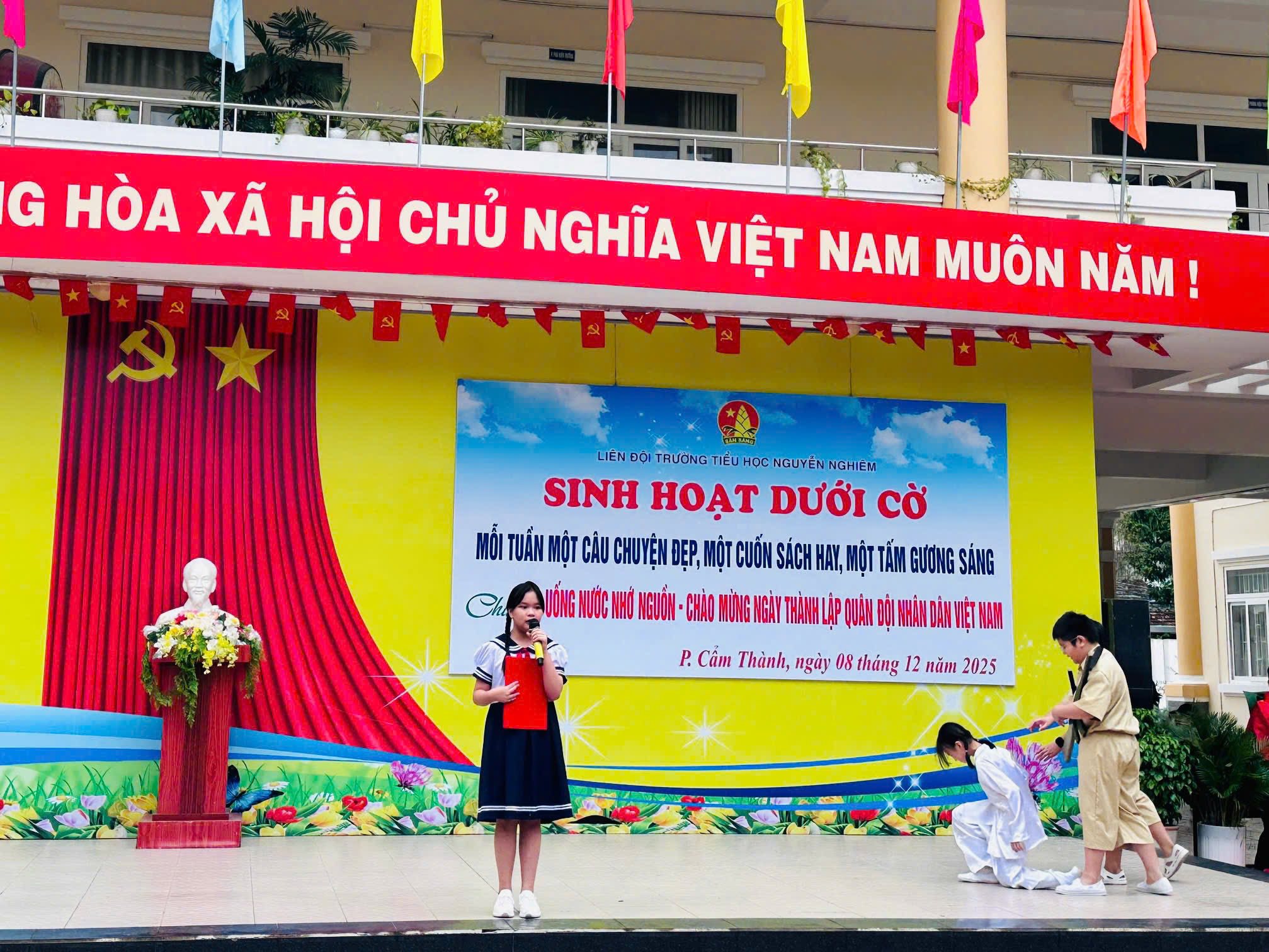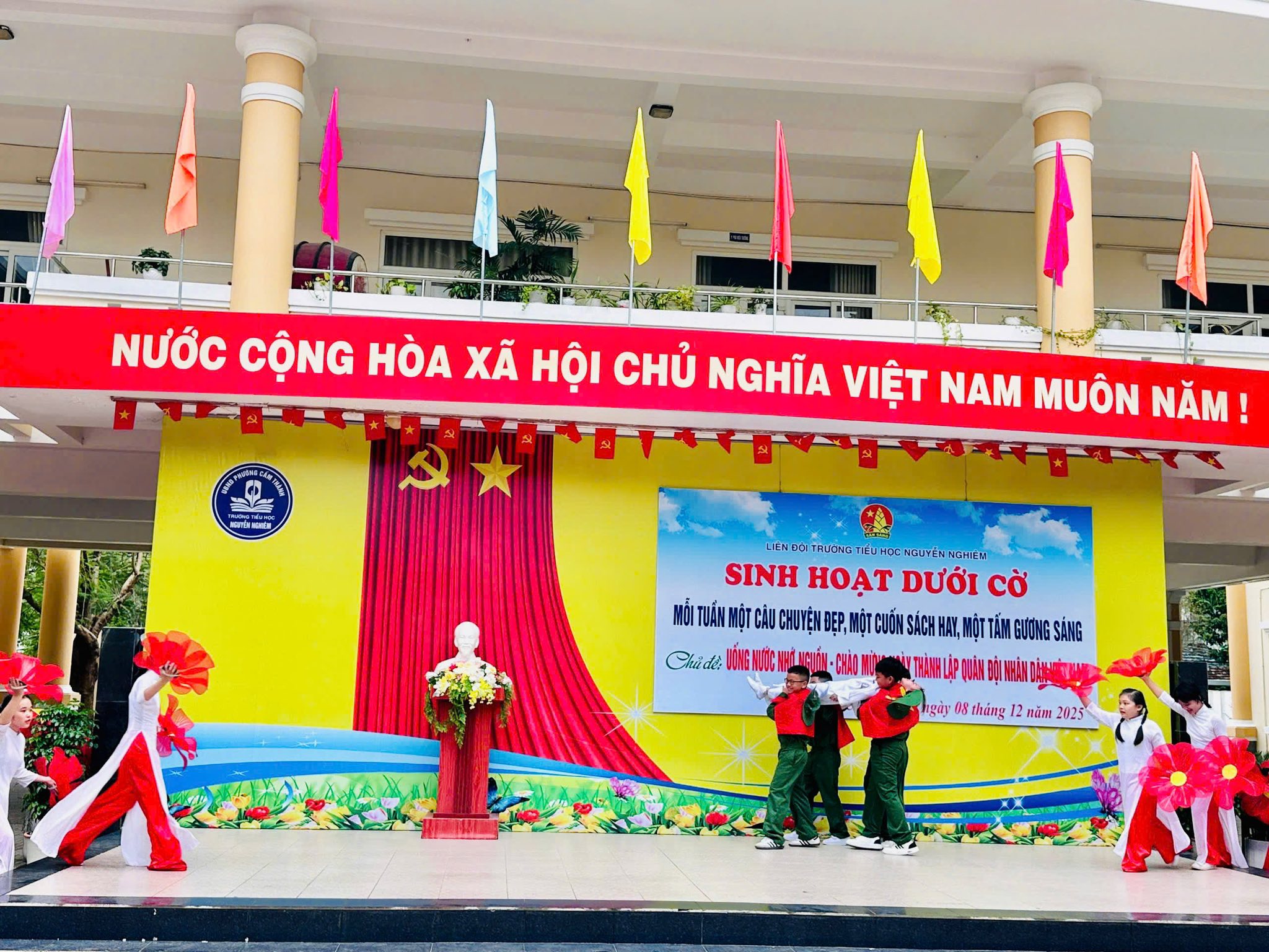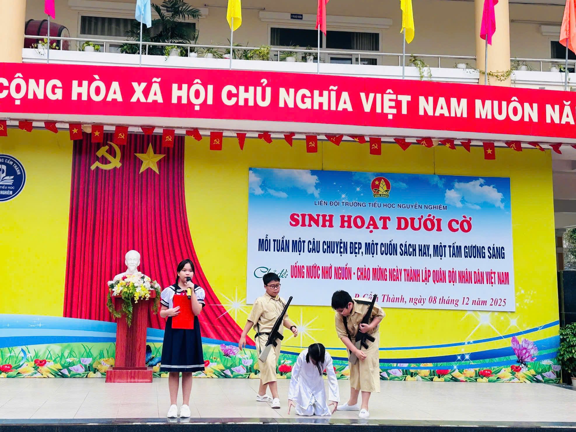 Sáng ngày 08/12/2025 Liên đội Trường Tiểu học Nguyễn Nghiêm cùng các lớp 4G, 5B tổ chức sinh hoạt theo chủ điểm: UỐNG NƯỚC NHỚ NGUỒN – CHÀO MỪNG 81 NĂM NGÀY THÀNH LẬP QUÂN ĐỘI NHÂN DÂN VIỆT NAM 22/12/1944- 22/12/2025.