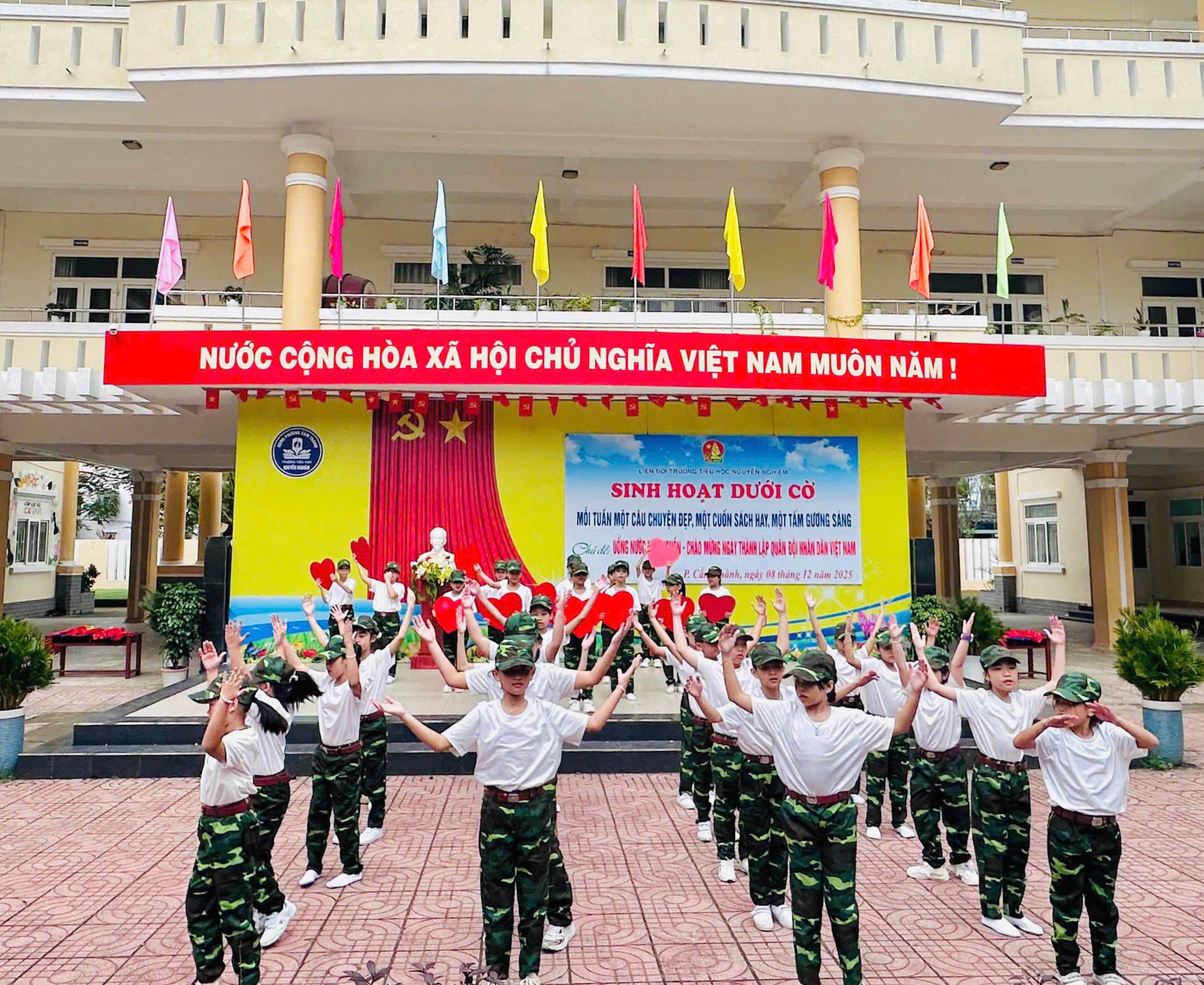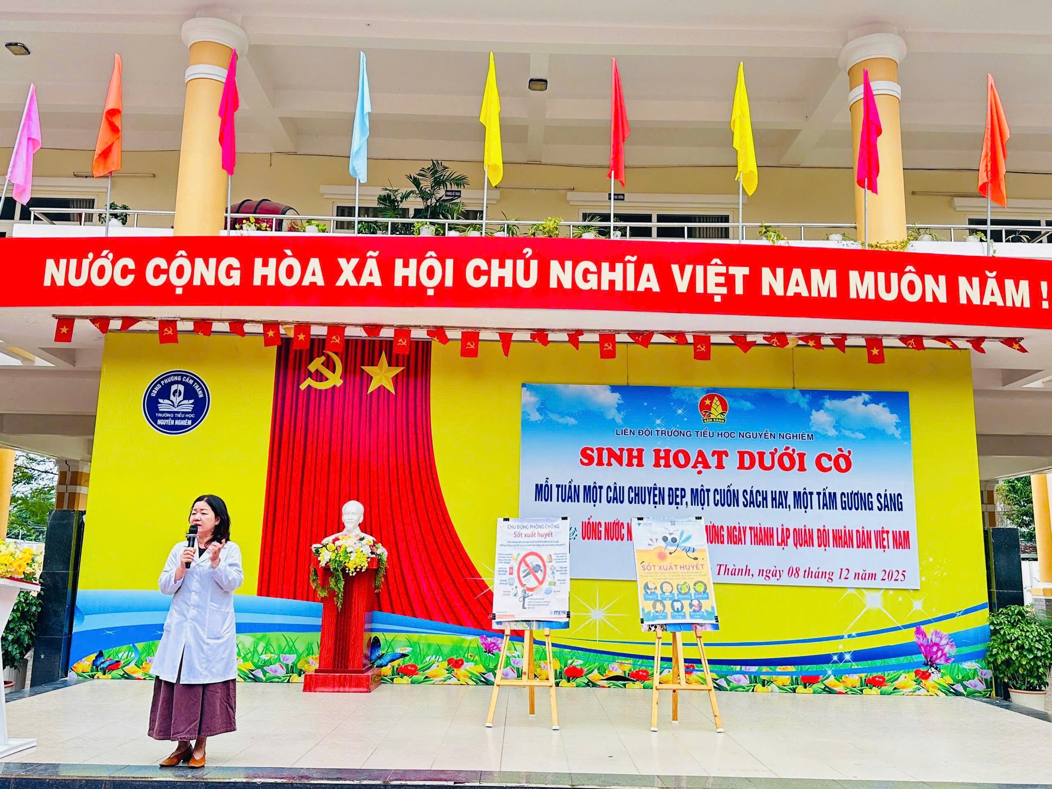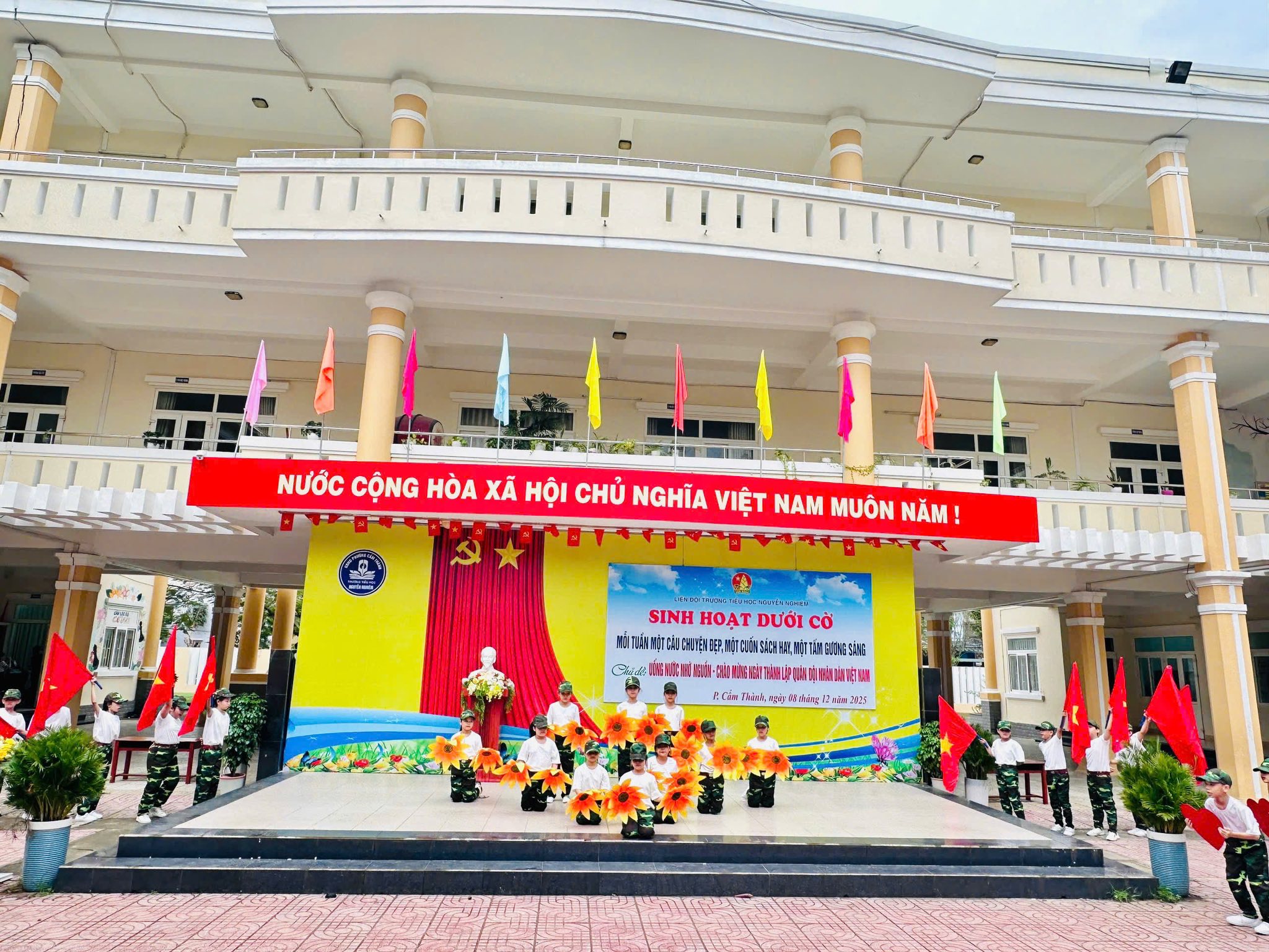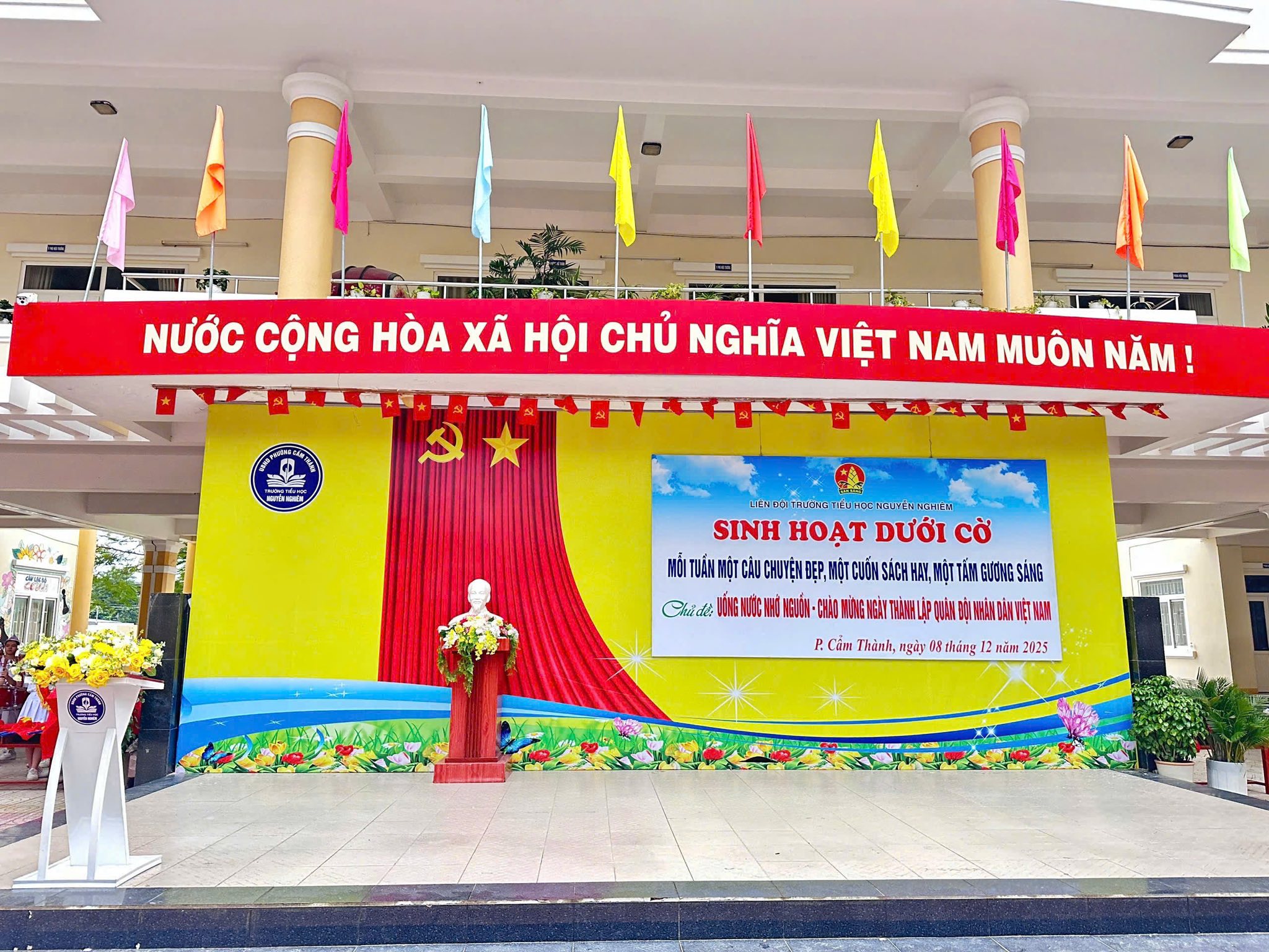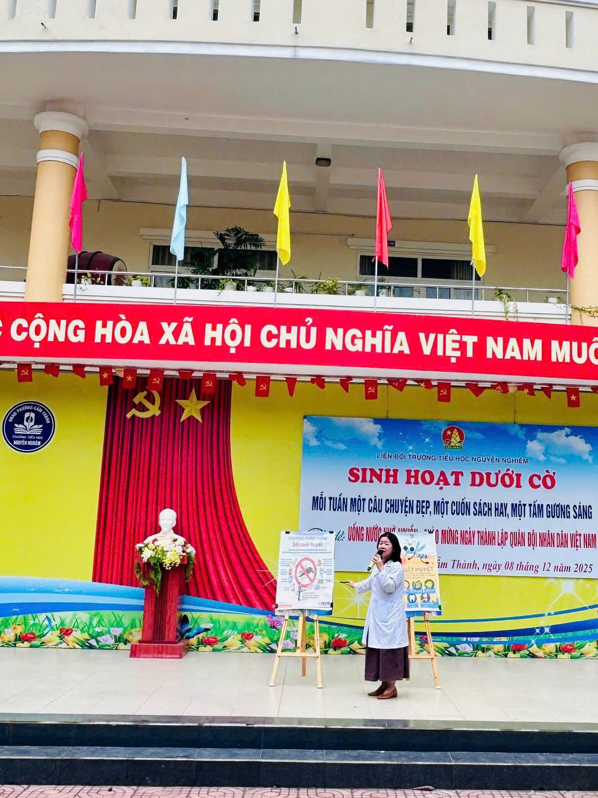 Sáng ngày 08/12/2025 Liên đội Trường Tiểu học Nguyễn Nghiêm cùng các lớp 4G, 5B tổ chức sinh hoạt theo chủ điểm: UỐNG NƯỚC NHỚ NGUỒN – CHÀO MỪNG 81 NĂM NGÀY THÀNH LẬP QUÂN ĐỘI NHÂN DÂN VIỆT NAM 22/12/1944- 22/12/2025.