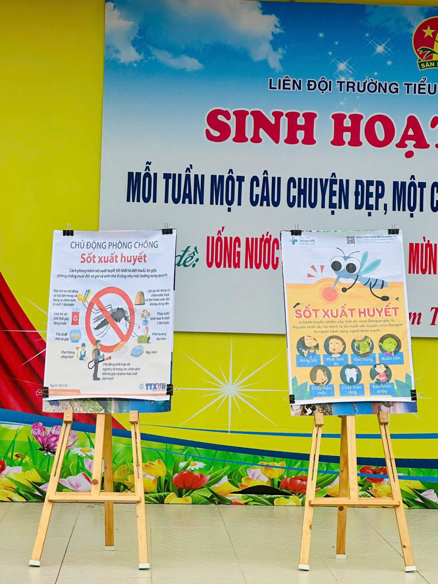 Cũng trong tiết SHDC sáng hôm nay, Cô Nữ Y tế nhà trường Tuyên truyền phòng chống bệnh sốt xuất huyết đến toàn Liên đội!