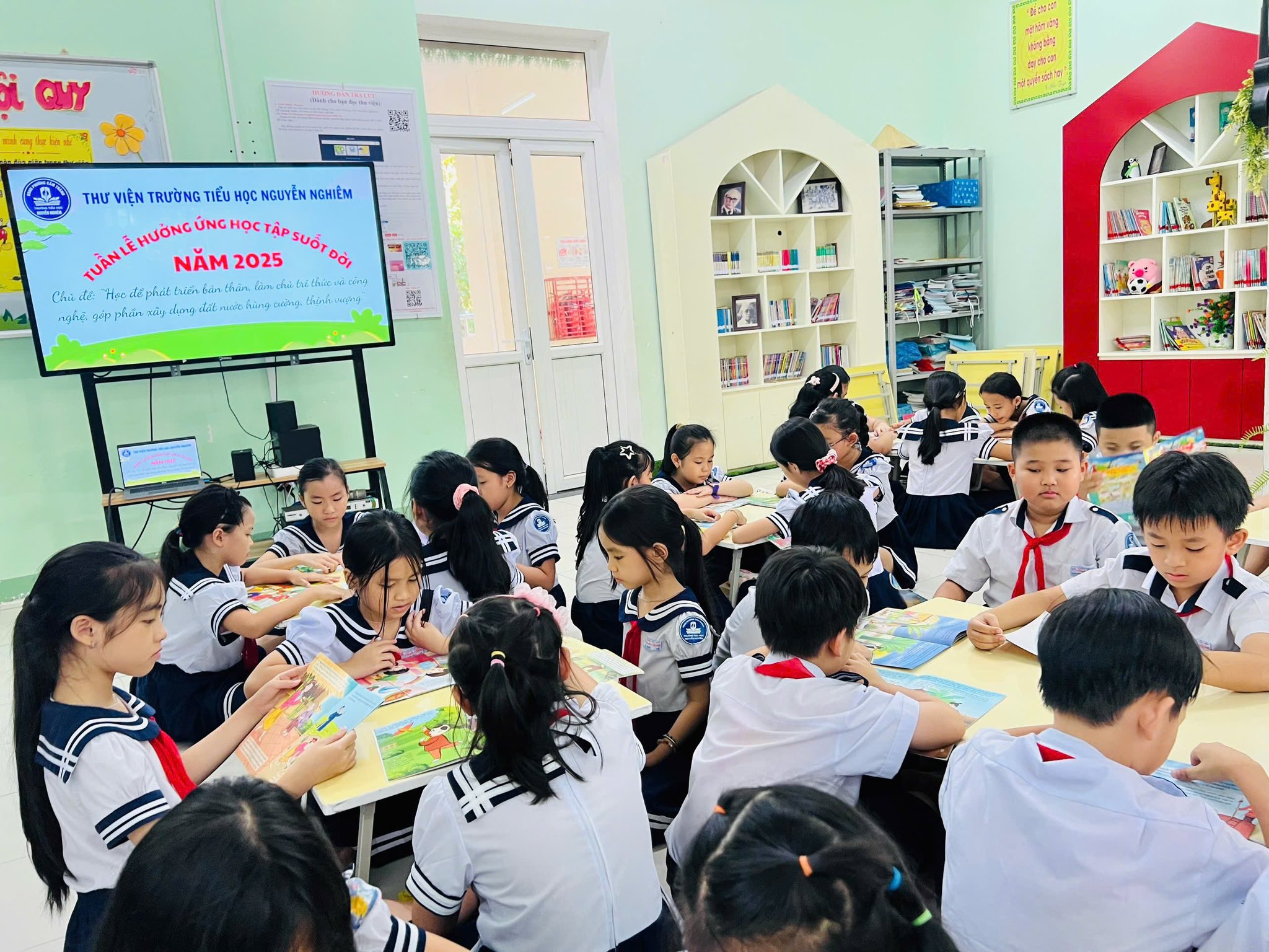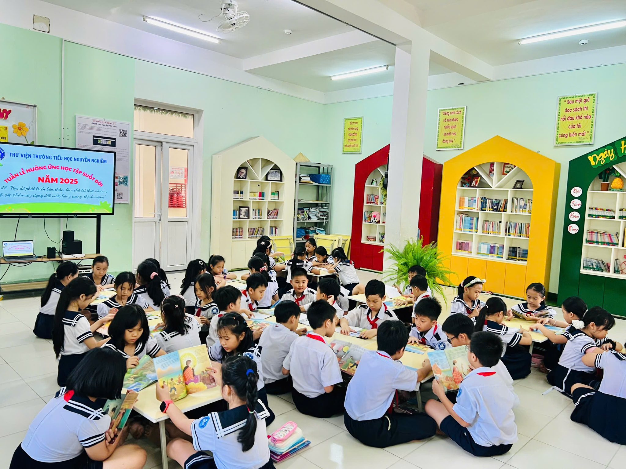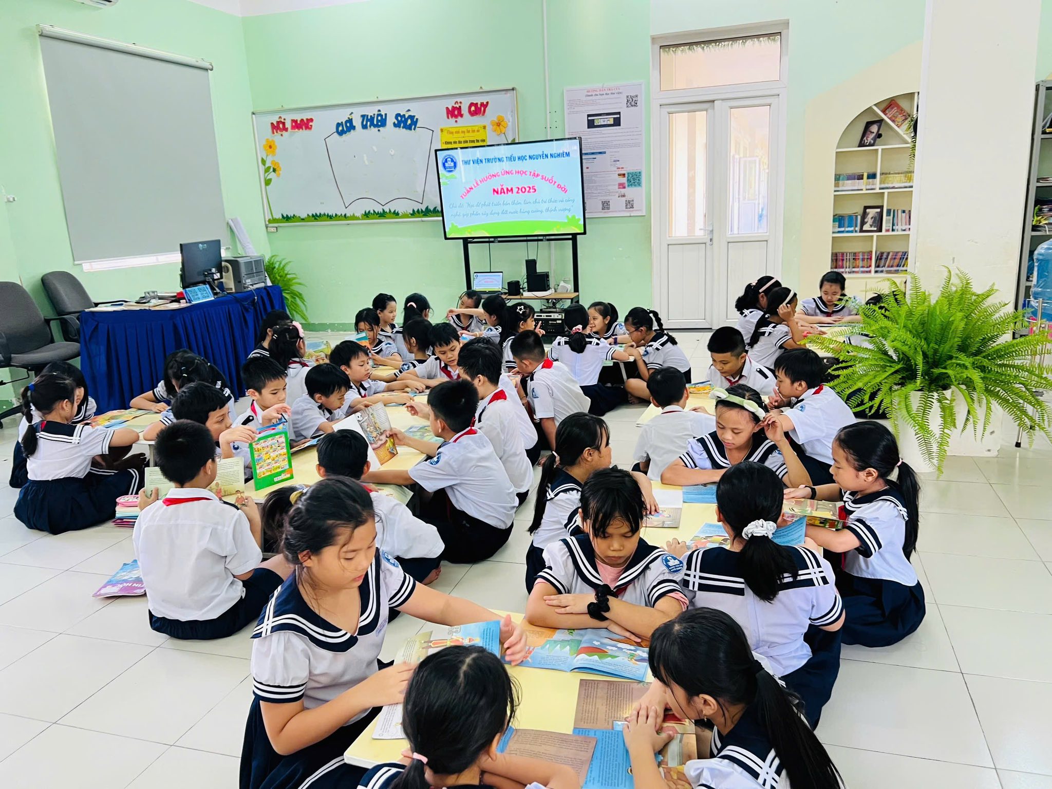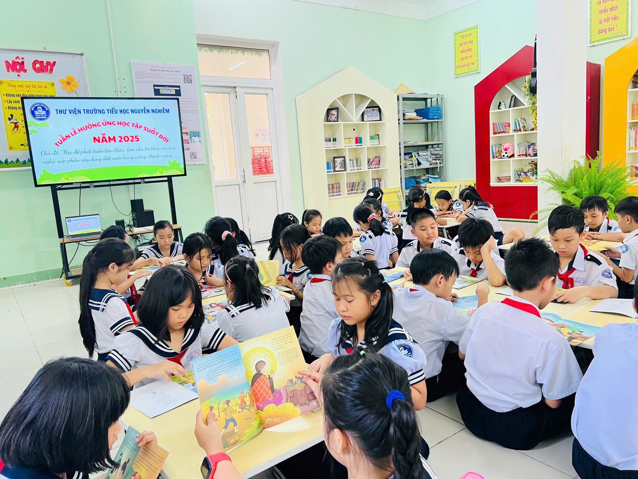 Thực hiện Công văn số 5607/BGDĐT-GDNNGDTX ngày 15/9/2025 của Bộ Giáo dục và Đào tạo về việc tổ chức Tuần lễ hưởng ứng học tập suốt đời năm 2025; Công văn số 2996/UBND-KGVX ngày 30/9/2025 của UBND tỉnh về việc tổ chức Tuần lễ hưởng ứng học tập suốt đời năm 2025; Công văn số 1306/SGDĐT-GDTXHSSV ngày 30/9/2025 của Sở Giáo dục và Đào tạo, UBND phường đề nghị các cơ quan, đơn vị, cơ sở giáo dục (viết tắt là đơn vị) trên địa bàn phường tổ chức Tuần lễ hưởng ứng học tập suốt đời năm 2025. Trường Tiểu học Nguyễn Nghiêm đã tổ chức Tuần lễ hưởng ứng học tập suốt đời với chủ đề: “Học để phát triển bản thân, làm chủ tri thức và công nghệ, góp phần xây dựng đất nước hùng cường, thịnh vượng” được tổ chức từ ngày 01/10/2025 đến ngày 07/10/2025.